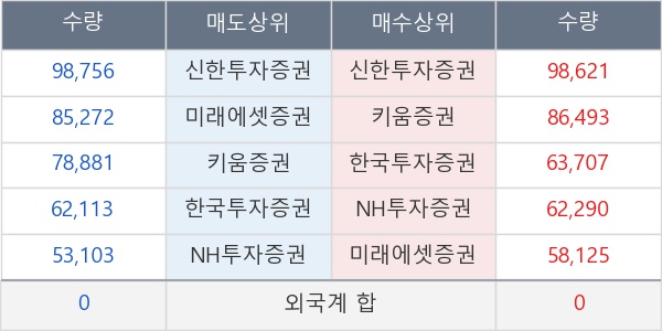 [표] 외국인ㆍ기관 순매매량 (단위 주)