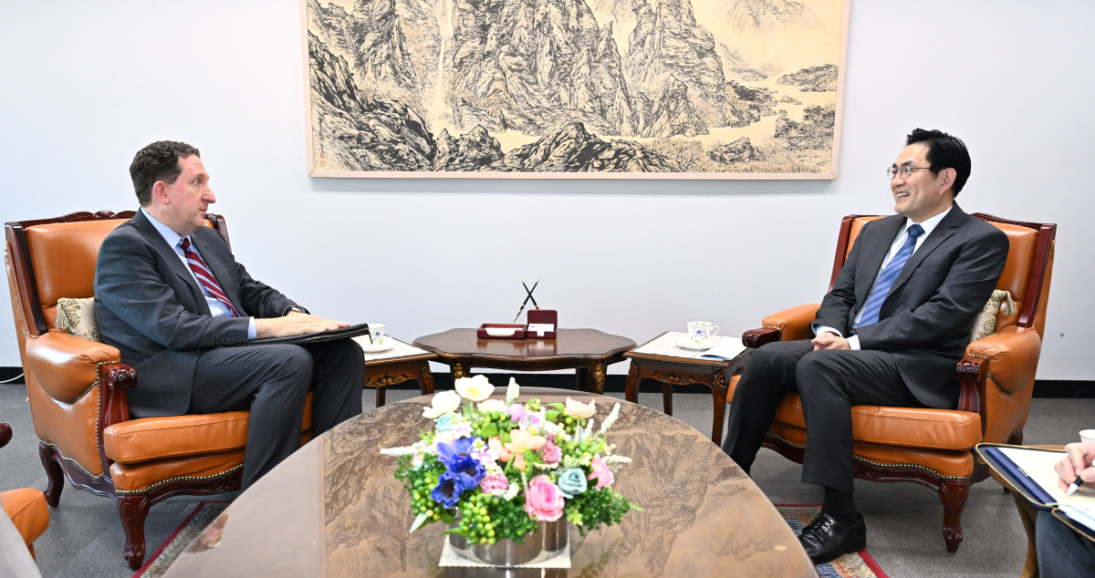 정연두 외교전략정보본부장이 지난 19일 외교부 청사에서 제임스 헬러 신임 주한미국대사대리를 접견하고 있다. [사진=외교부] 2026.2.19