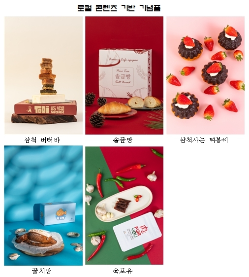 이번에 출시된 상품은 ▲'삼척 버터바'(토디·근덕면) ▲'솔금빵'(아가파오·남양동) ▲'삼척사는 덕봉씨'(리가브로·근덕면) ▲'꿀치빵'(지재근 베이커리·봉황로) ▲'육포유'(pH7Tea·중앙시장 청년몰) 등 5종이다.