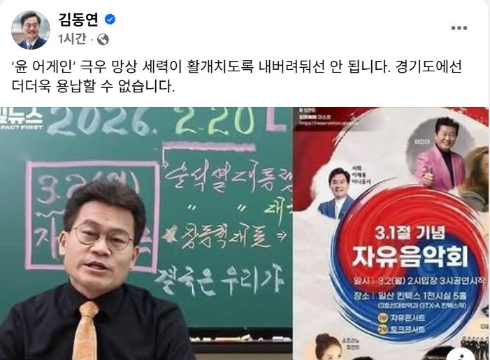 김동연 경기지사, 전한길 주도 '3·1절 기념 자유음악회' 취소 요구