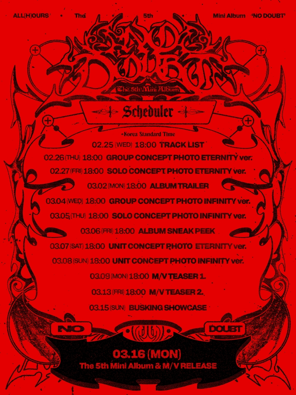 24일 소속사 이든엔터테인먼트는 "올아워즈가 오는 3월 16일 다섯 번째 미니앨범 '노 다웃(NO DOUBT)'을 발매한다"라고 밝혔다.
