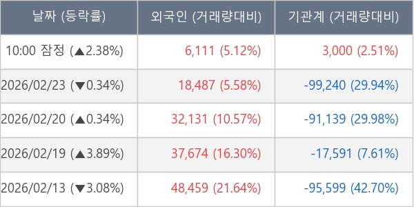 [표] 주요 기관별 순매매량 (단위 주)