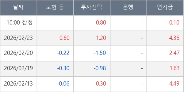 [표] 주요 기관별 순매매량 (단위 만주)