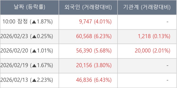 [표] 외국인ㆍ기관 순매매량 (단위 주)