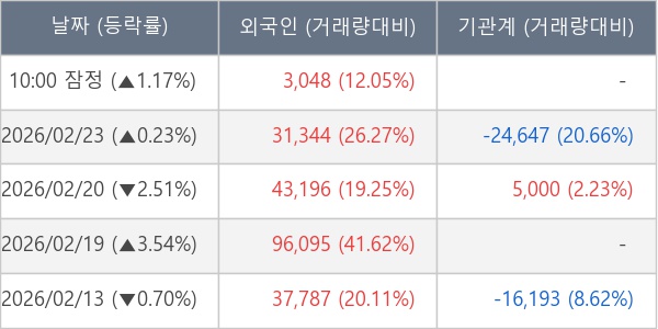 [표] 외국인ㆍ기관 순매매량 (단위 주)