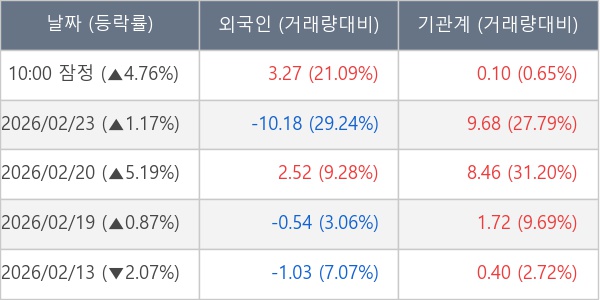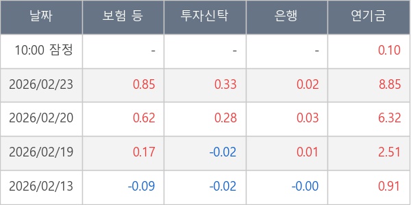 [표] 주요 기관별 순매매량 (단위 만주)