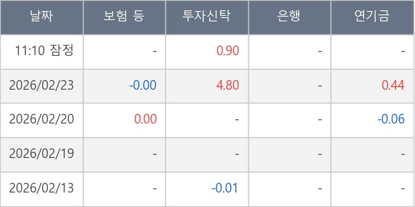 [표] 주요 기관별 순매매량 (단위 만주)