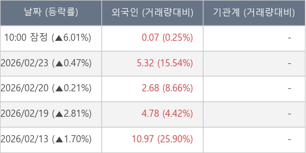 [표] 외국인ㆍ기관 순매매량 (단위 만주)