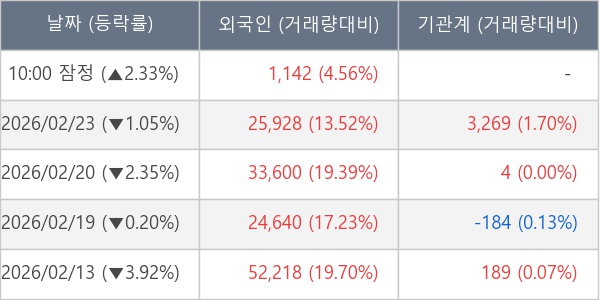 [표] 외국인ㆍ기관 순매매량 (단위 주)