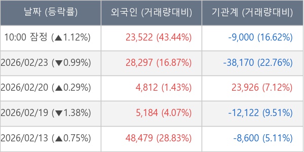 [표] 주요 기관별 순매매량 (단위 주)