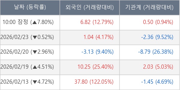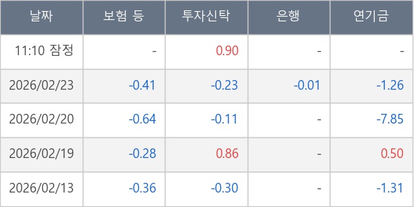 [표] 주요 기관별 순매매량 (단위 만주)