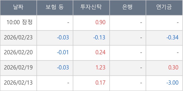 ※ 장중 매매동향은 잠정치이므로 실제 매매동향과 차이가 발생할수 있음