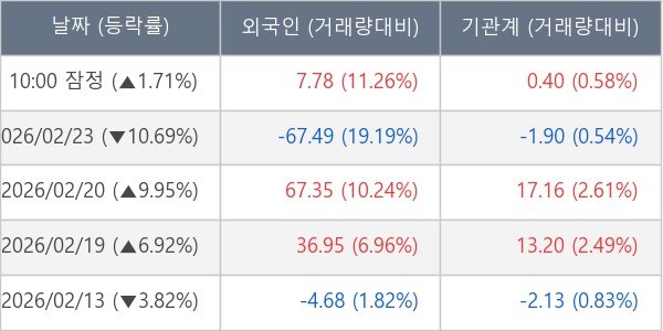 [표] 주요 기관별 순매매량 (단위 만주)