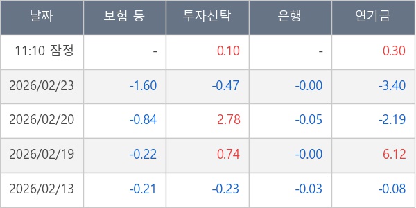 [표] 주요 기관별 순매매량 (단위 만주)