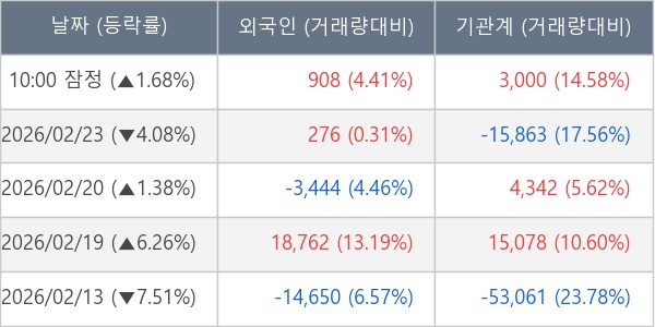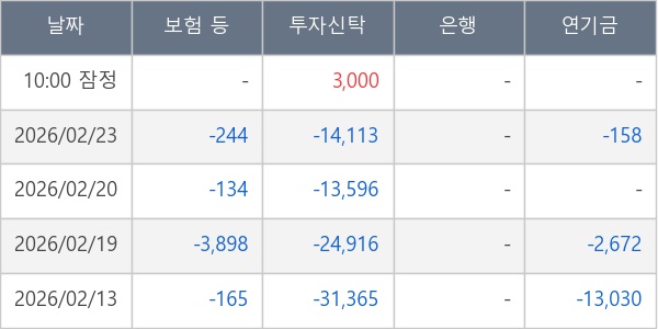 [표] 주요 기관별 순매매량 (단위 주)