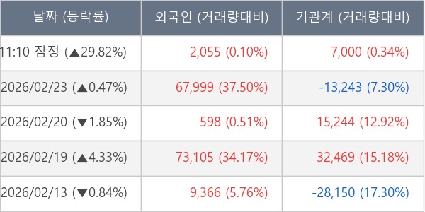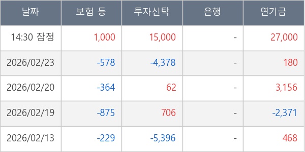 [표] 주요 기관별 순매매량 (단위 주)