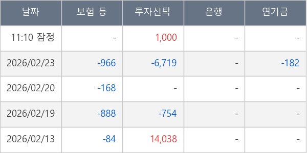 ※ 장중 매매동향은 잠정치이므로 실제 매매동향과 차이가 발생할수 있음