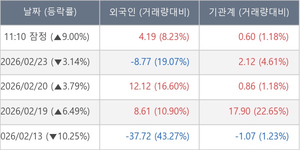 [표] 외국인ㆍ기관 순매매량 (단위 만주)