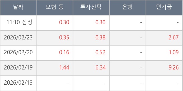 [표] 주요 기관별 순매매량 (단위 만주)
