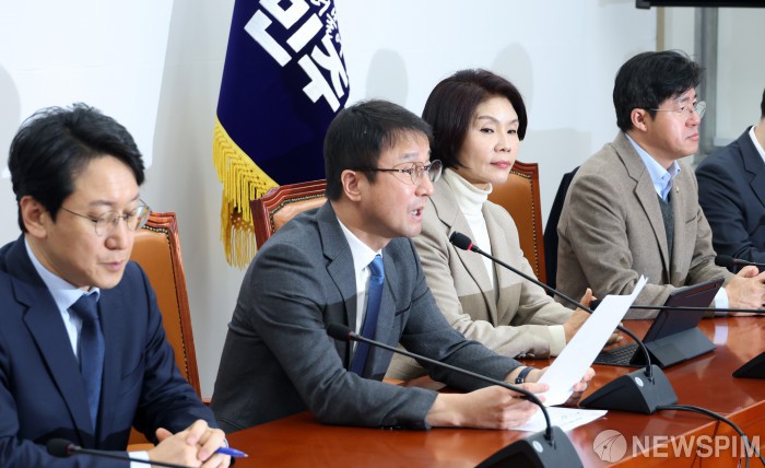 [서울=뉴스핌] 정일구 기자 = 한병도 더불어민주당 원내대표가 24일 오전 서울 여의도 국회에서 열린 원내대책회의에서 모두발언을 하고 있다. 2026.02.24 mironj19@newspim.com