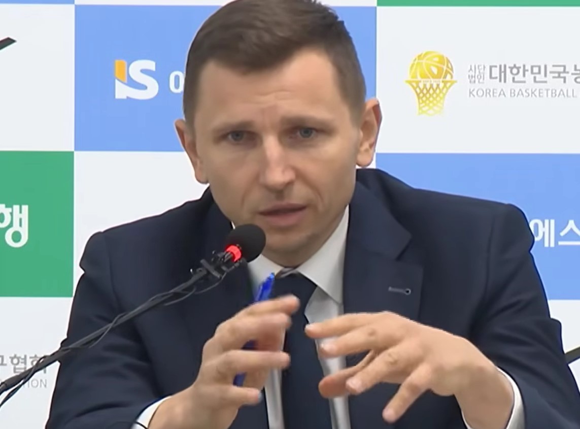 [서울=뉴스핌] 박상욱 기자 = 지난 4일 남자 농구 국가대표 명단 발표하는 니콜라이스 마줄스 감독. [사진=MBC 중계화면 캡처] 2026.02.24 psoq1337@newspim.com