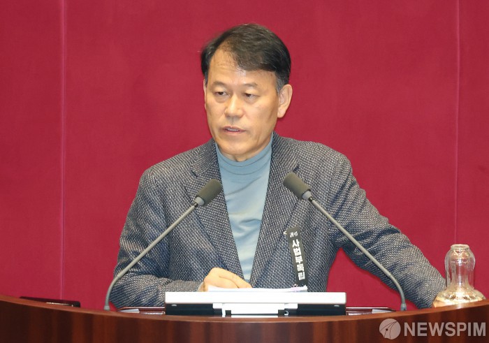 [서울=뉴스핌] 정일구 기자 = 윤한홍 국민의힘 의원이 24일 오후 서울 여의도 국회에서 열린 제432회국회(임시회) 제8차 본회의에서 상법 일부개정법률안(대안)에 대한 무제한 토론(필리버스터)을 하고 있다. 2026.02.24 mironj19@newspim.com