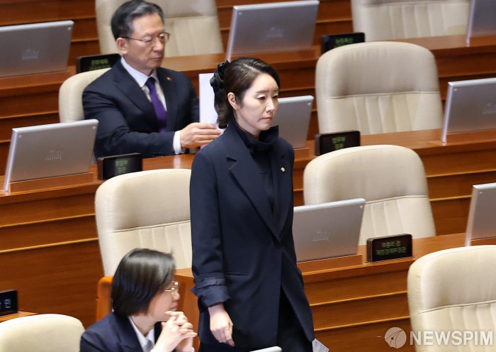 [서울=뉴스핌] 정일구 기자 = 강선우 무소속 의원이 24일 오후 서울 여의도 국회에서 열린 제432회국회(임시회) 제8차 본회의에서 체포동의안 표결을 앞두고 신상 발언을 하기 위해 이동하고 있다. 2026.02.24 mironj19@newspim.com