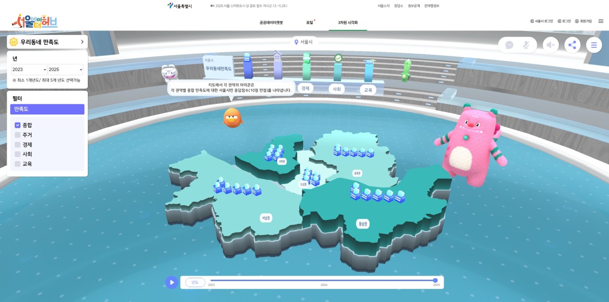 무엇보다 녹지, 교통, 돌봄 등 생활 인프라 만족도가 최근 3년간 지속적으로 상승하고 있는 가운데, 녹지환경에 대한 만족 비율은 63.4%로 전년 대비 8.3%포인트(p) 상승해 역대 최고치를 기록했다. 사는 곳 근처 공원과 녹지에 대한 시민의 만족도는 2024년 55.1%에서 2025년 63.4%로 늘어났다.