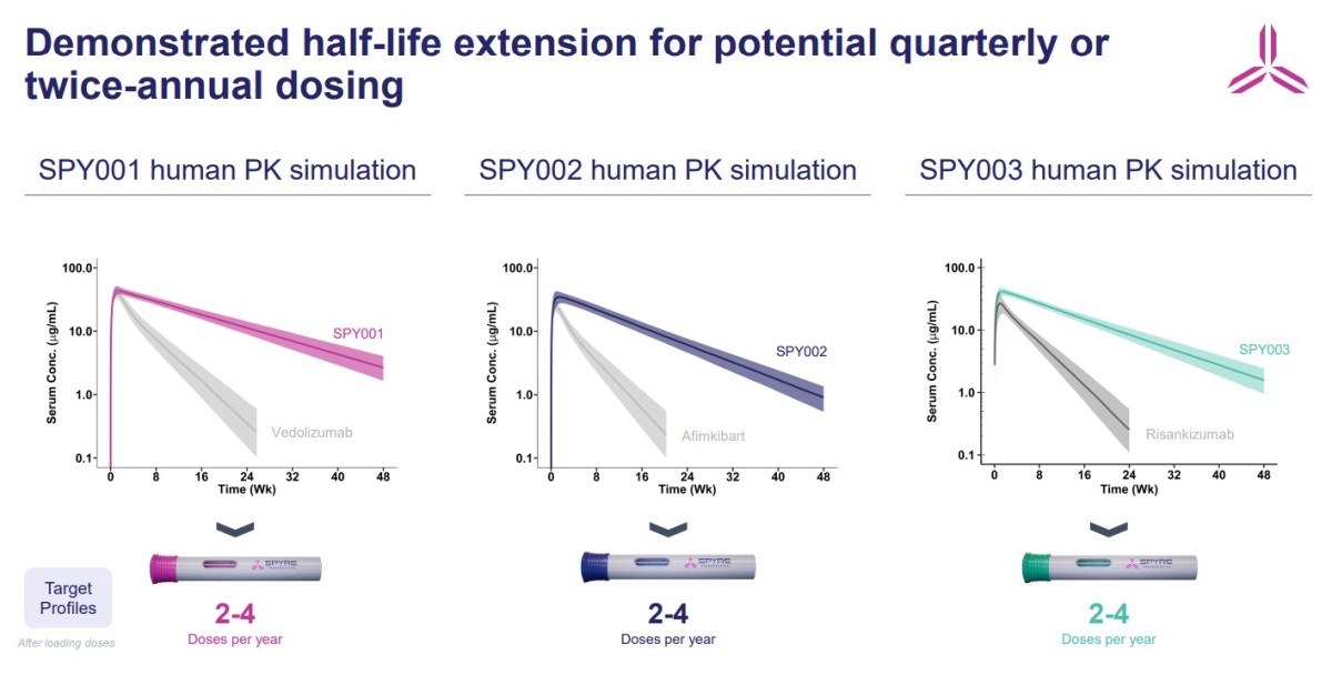 SPY003은 IL-23의 p19 서브유닛을 표적으로 하는 항체 후보물질이다. 2025년 11월 공개된 중간 1상 데이터에서 약 85일에 달하는 인상적인 반감기를 기록하며 시장의 이목을 끌었다. 업계는 이를 '게임 체인저' 수준으로 평가하고 있으며, 2026년 2월 유럽 크론병·대장염 학회(ECCO) 학술대회에서 추가 데이터가 발표되며 잠재적 동급 최고 프로파일에 대한 근거가 한층 강화됐다.