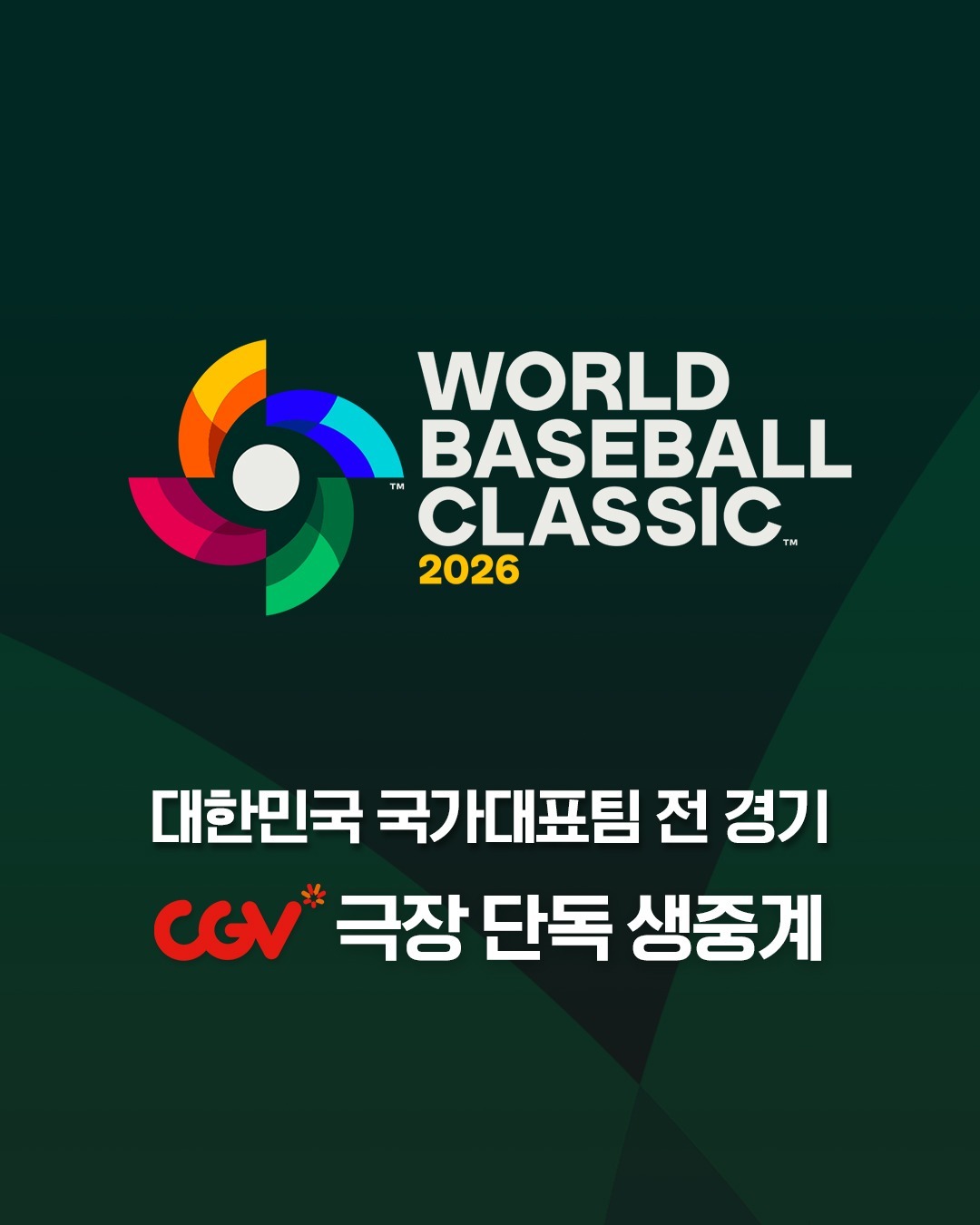 CGV는 '2026 WBC' 대한민국 야구 국가대표팀의 전 경기를 극장 단독으로 생중계한다고 25일 밝혔다.