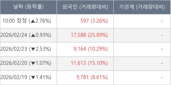 [표] 외국인ㆍ기관 순매매량 (단위 주)