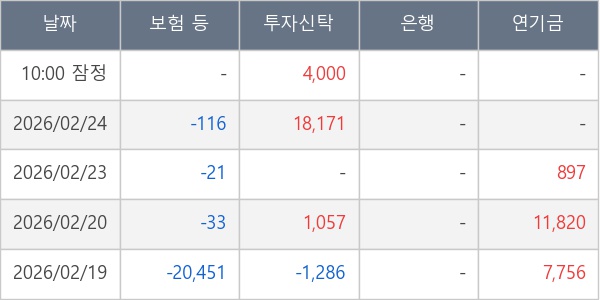 [표] 주요 기관별 순매매량 (단위 주)