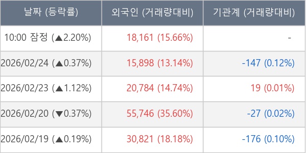 [표] 외국인ㆍ기관 순매매량 (단위 주)