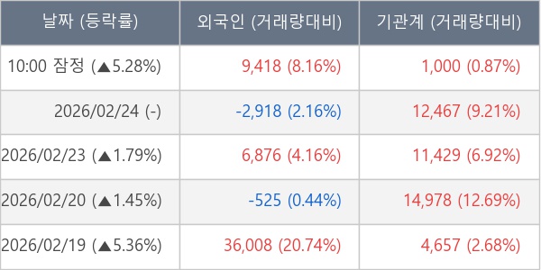 [표] 외국인ㆍ기관 순매매량 (단위 주)