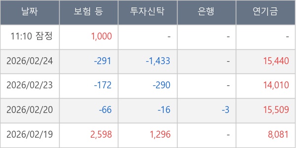 ※ 사모펀드 등 일부 기관의 순매매량은 표시되지 않음