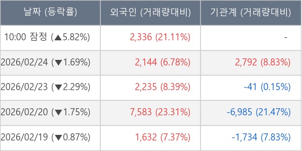 [표] 외국인ㆍ기관 순매매량 (단위 주)