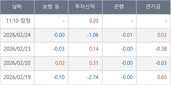 [표] 주요 기관별 순매매량 (단위 만주)