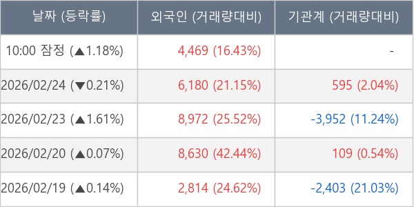 [표] 외국인ㆍ기관 순매매량 (단위 주)