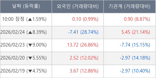 [표] 주요 기관별 순매매량 (단위 만주)