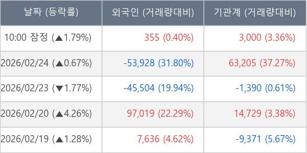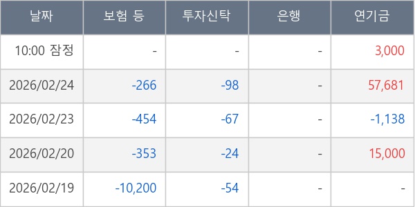 [표] 주요 기관별 순매매량 (단위 주)