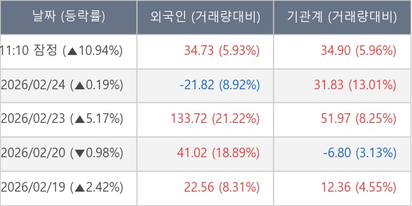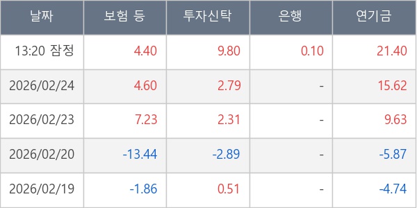 [표] 주요 기관별 순매매량 (단위 만주)