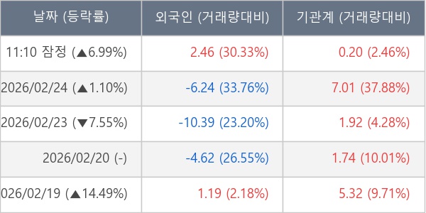 [표] 외국인ㆍ기관 순매매량 (단위 만주)