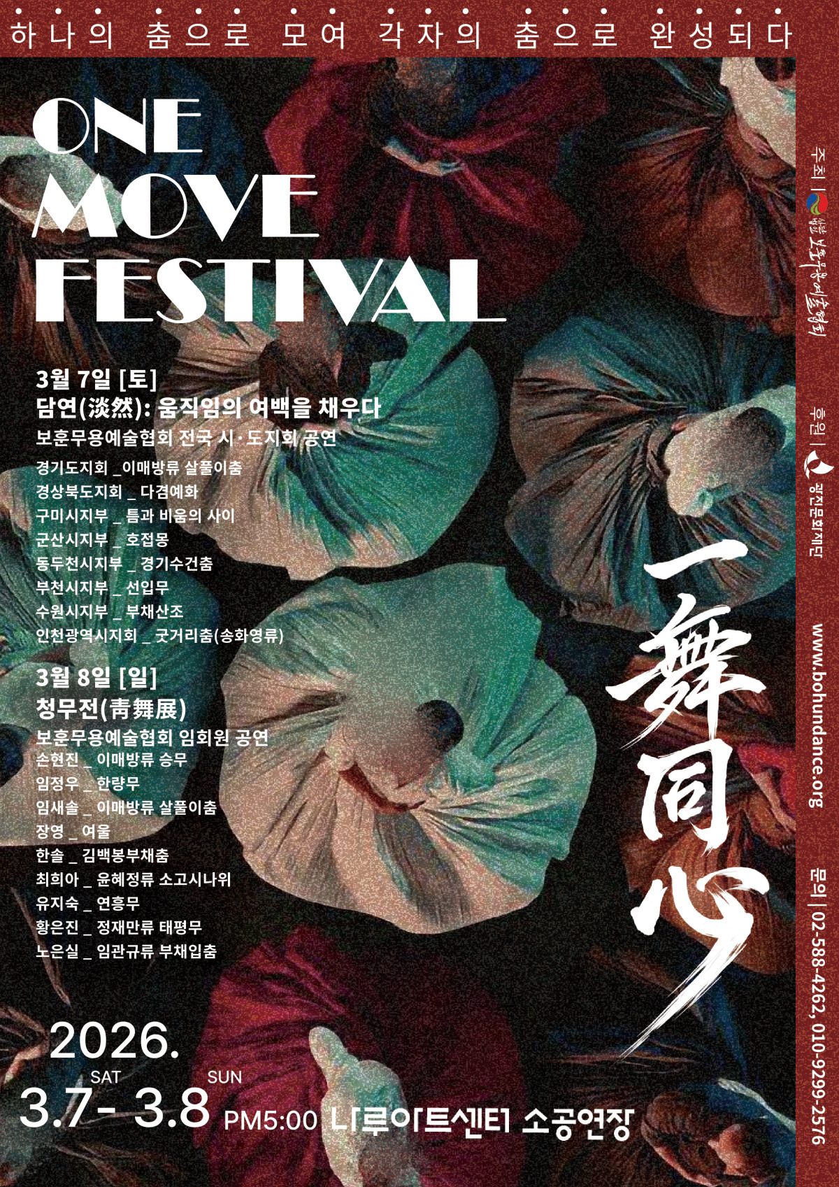'One Move Festival'은 한국무용과 전통무용의 현재와 미래를 조망하는 무대로, 무용계와 시민 관객 모두에게 깊은 울림을 전할 것으로 기대된다.