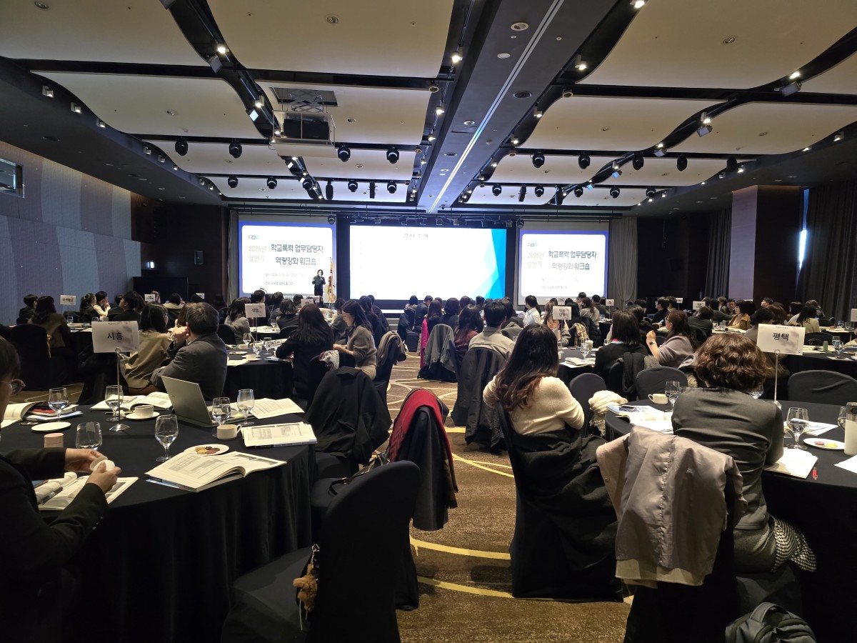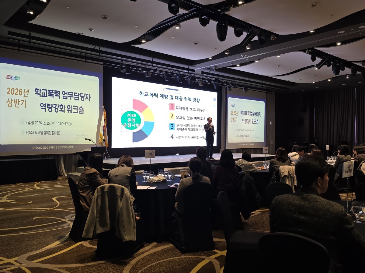 [수원=뉴스핌] 김가현 기자 = 경기도교육청이 25일 수원 노보텔에서 '2026년도 1차 학교폭력 업무 담당자 역량 강화 워크숍'을 개최했다. 이번 워크숍은 학교폭력 교육적 회복과 사안 처리 신뢰도 제고를 목표로 했다.