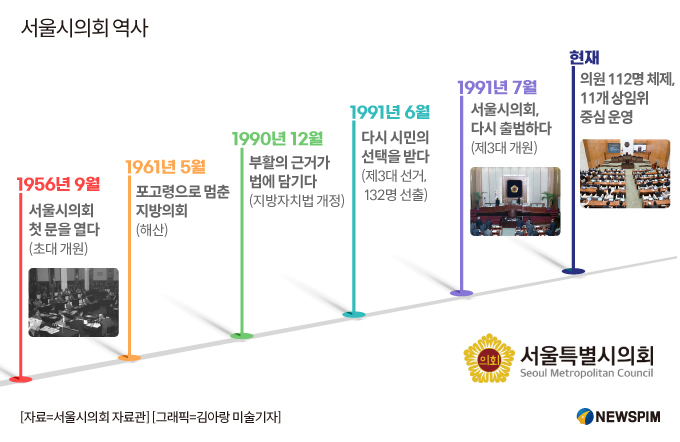 ◆ 1956년 초대 서울시의회 개원...1995년 4대 의회부터 '전국동시지방선거' 통해 구성