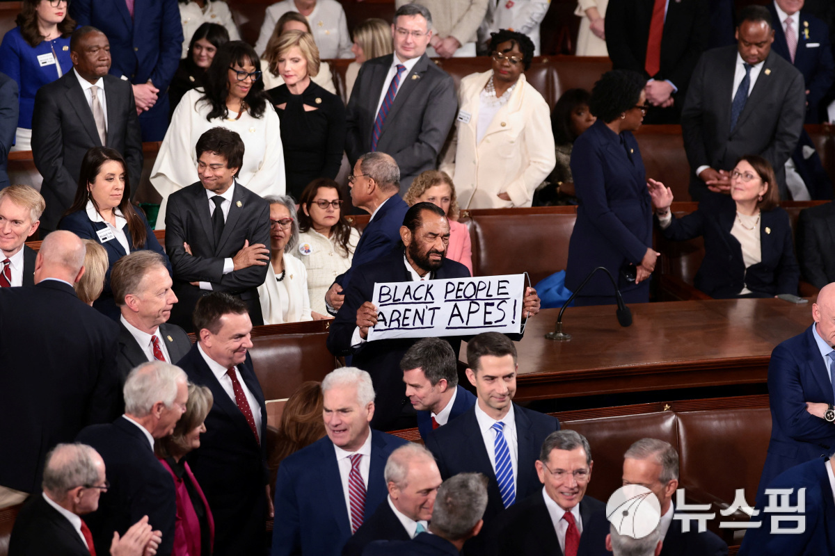 이에 소말리아 난민 출신인 오마르 의원은 트럼프 대통령의 이민 정책 성과 발언 도중, 최근 미네소타에서 발생한 이민단속 요원의 총격 사건을 겨냥해 "당신은 미국인을 죽였다"고 소리쳤고, 팔레스타인계인 틀라이브 의원은 트럼프 대통령이 이스라엘을 언급하자 "제노사이드(집단학살)"이라고 고함쳤다. 이 밖에 알 그린(텍사스) 의원은 "흑인은 유인원이 아니다"라는 문구가 적힌 피켓을 들고 시위를 벌이다 강제 퇴장당하기도 했다.