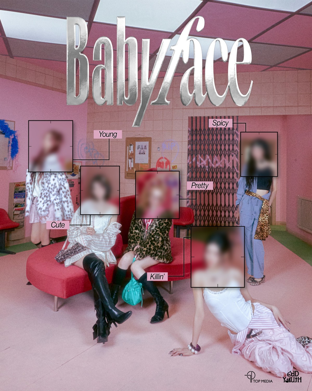 26일 공개된 스포일러 이미지는 경고창을 연상시키는 독특한 비주얼로 시선을 사로잡았다. 블러 효과로 멤버들의 얼굴을 가린 가운데 'Young(영)', 'Cute(큐트)', 'Pretty(프리티)', 'Spicy(스파이시)', 'Killin'(킬린)' 등의 키워드를 배치해 오드유스가 지닌 다채로운 매력을 직관적으로 드러내며 궁금증을 자극했다.