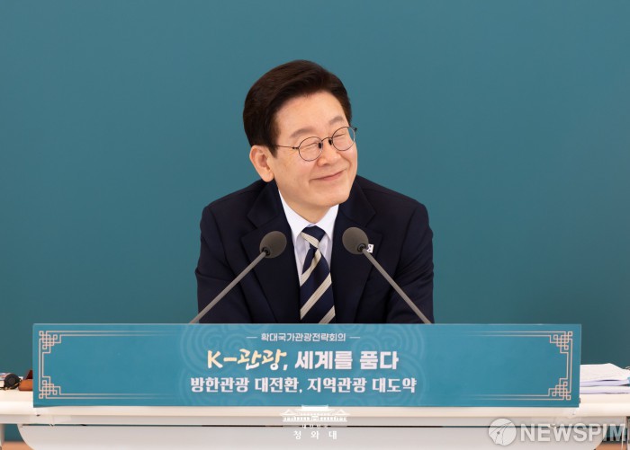 [서울=뉴스핌] 이재명 대통령이 지난 25일 서울 종로구 청와대에서 열린 제11차 확대국가관광전략회의 'K-관광, 세계를 품다'에서 미소를 짓고 있다. [사진=청와대] 2026.02.26 photo@newspim.com