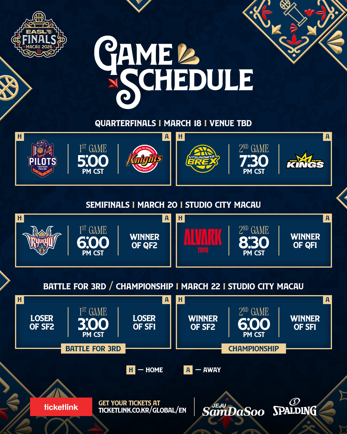 특히 3월 18일 6강전은 일반 관중에게 무료로 개방된다. 티켓링크를 통해 사전 예약이 가능하며, 사전 예약자에게는 우선 좌석이 제공된다. 6강전 경기 장소는 추후 발표된다. EASL은 마카오가 2017년부터 리그 역사와 함께해온 상징적인 도시라는 점을 강조하며, 이번 무료 티켓 제공은 그동안 리그를 지지해온 현지 팬들과 커뮤니티에 대한 감사의 의미라고 밝혔다.