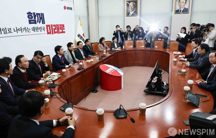 [서울=뉴스핌] 윤창빈 기자 = 장동혁 국민의힘 대표가 26일 오전 서울 여의도 국회에서 4선 이상 중진 의원들과 면담을 하고 있다. 이날 장 대표는 중진 의원들과 '절윤' 문제 등 당이 나아가야 할 방향을 논의한다. 2026.02.26 pangbin@newspim.com